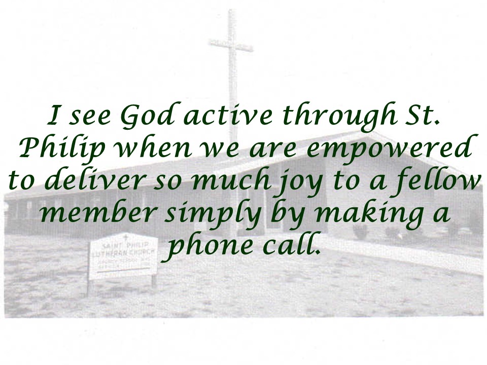 On Come and See Sunday we remember the calling of the disciple Philip and his simple invitation to his friend Nathaniel. Along with Nathanael we celebrate the promise that Jesus is the Son of God, the messiah and hear Jesus call to each of us to follow by making the same simple invitation – Come and See. This year at St. Philip Lutheran we celebrated by asking Where do you see God active in the life of the church? These are the stories told in images and quotes from members.